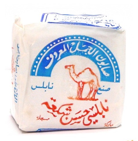The original Palestinian soap, from Nablus, Al-Jamal (“Camel”) is made in a cube-like shape about 1.5 inches (3.8 cm) tall and 2.25 by 2.25 inches (5.7 by 5.7 cm) wide, the colour of Nabulsi soap is like that of “the page of an old book.” The cubes are stamped on the top with Al-Jamal’s factory seal. The smell of Nabulsi soap is distinctive, although it is not perfumed.