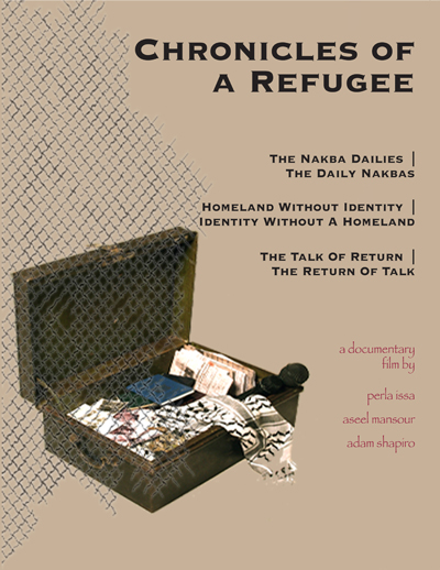 Chronicles of a Refugee is a 6-part documentary film series looking at the global Palestinian refugee experience over the last 60 years. The film presents Palestinian refugees who were displaced in 1948 and their descendants, and includes the wide range of age, socio-economic status, education level, etc.
