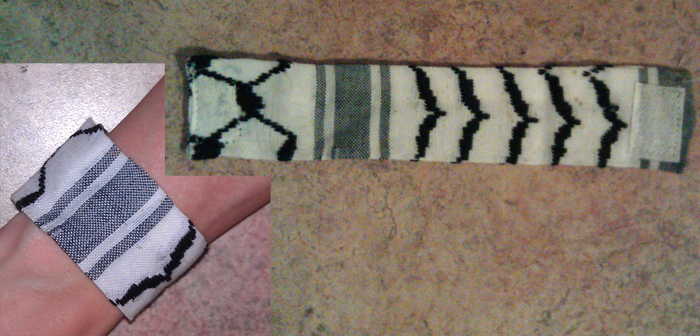 These wristbands are made from kufiyehs cut into wristband shape and re-sewn. An easy and stylish way to express your solidarity with struggles for justice, whether at protests or at work. Hand-made in Jordan from 100% cotton kufiyehs with velcro fasteners.