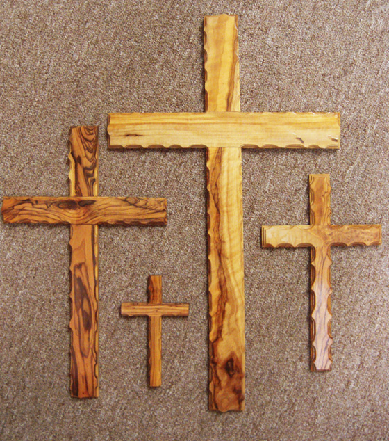Olivewood crosses handcrafted by the artisans of Bethlehem.