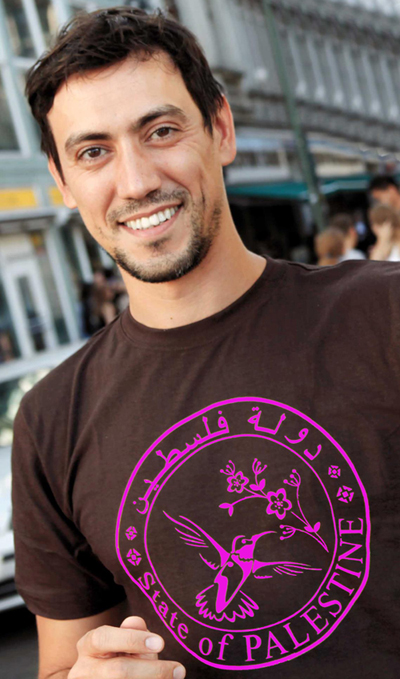 State of Palestine t-shirt by Khaled Jarrar in Ramallah. Shirt printed in Palestine.